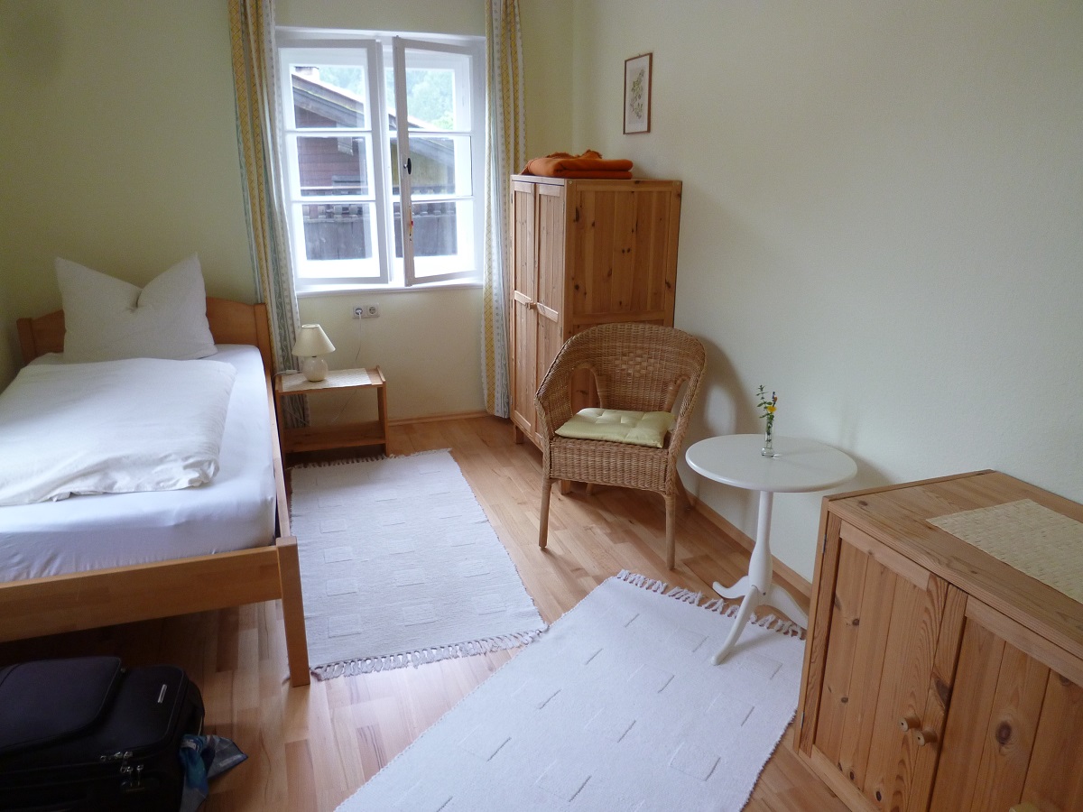 講習会があったSachrang(サハラング)はミュンヘン郊外にありミュンヘンからは2時間くらいかかる。ミュンヘンから途中のAschauまでは列車でそこからはバスなんですが、そのバス、夏場はなんと一日1本で夕方のみ。4人いたのでバスはあきらめタクシーに…。でもAschauでタクシーを拾えるのかかなり疑問ではあったんですが、やはりタクシーなんぞ拾えるような都会ではなくて、駅員さんにタクシー呼んでいただいた。とっても親切。。。