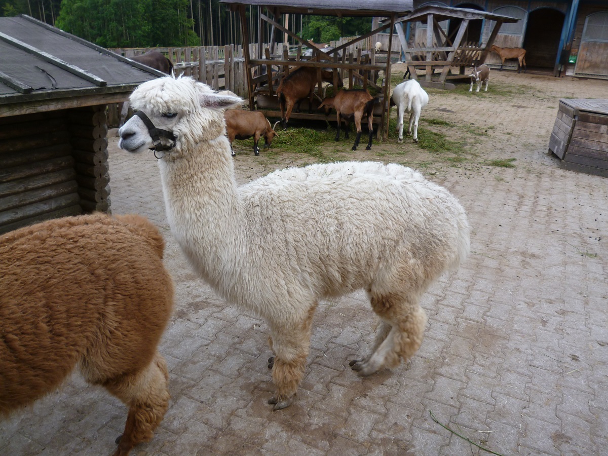 30分以上は走り到着したのは緑の中。しばらく歩くとあるのは動物の小屋。でもそこにはアルパカが…。