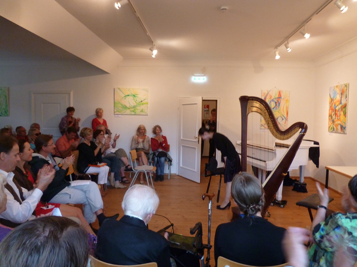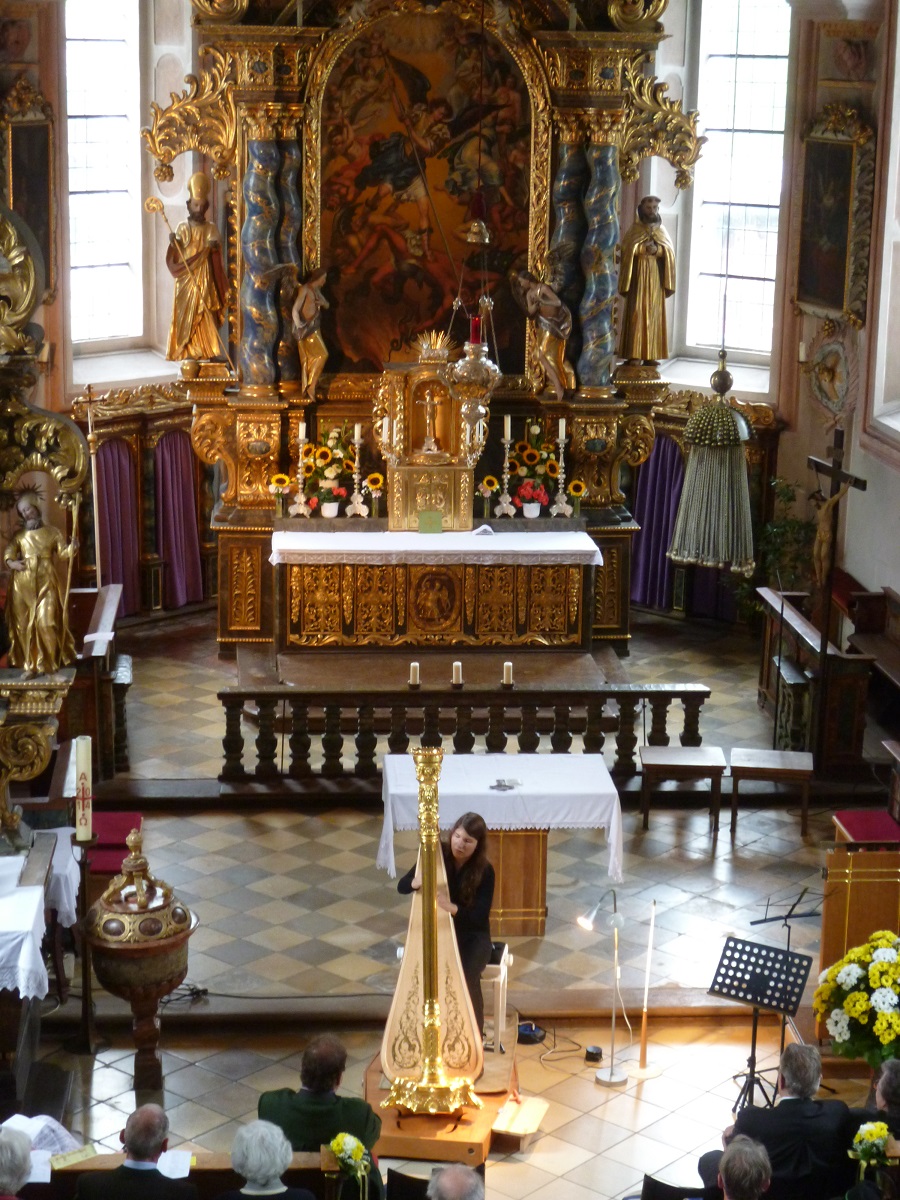 ハープクラスは今日で終了で4時から生徒のコンサート。なので私たちのレッスンは午前中のみ。マティアスは素晴らしいこの村の人々にどうしてもピアノの演奏を聴かせたかったみたいで、若いまりちゃんが飛び入りでショパンを弾くことに。。。でも私たち講習会の間、いっこも練習できなかったのよね。でも彼女コンサートの前に1時間ほど練習しただけで、本番はバッチリ!!!拍手が止まなかったくらい・・・第一回のピアノクラスを代表して立派な演奏をありがとう。教会でコンサートが始まり