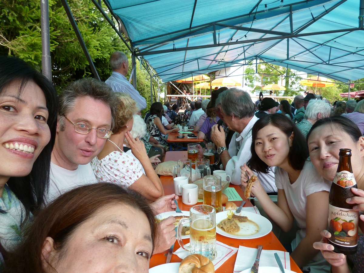 旦那さんのシェレンベルガー先生(オーボエ&指揮者)がせっせとソーセージ焼いておられ、ソーセージの山積には驚いた!大胆。一人5本以上は軽く食べたような…。食欲もその場の環境で変わるものですね。たくさん食べた。(^^)v 夜11時過ぎに帰宅。